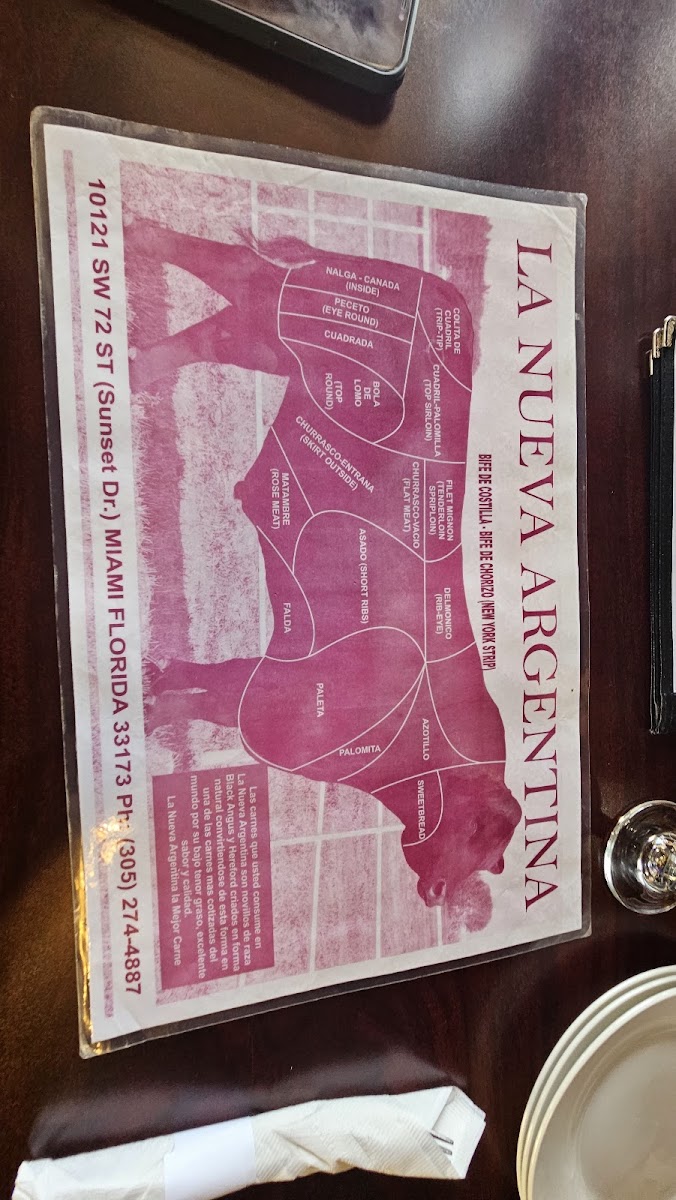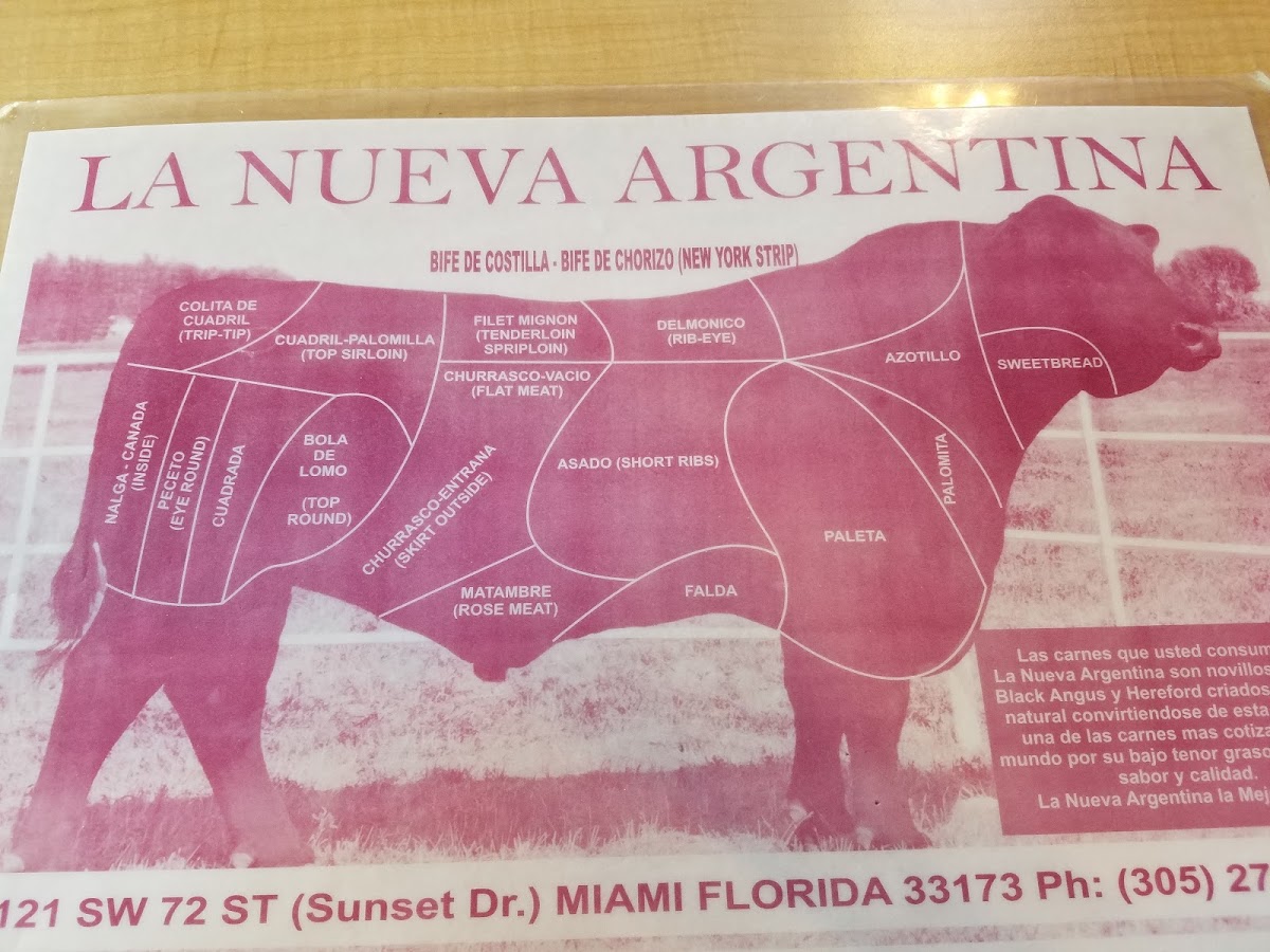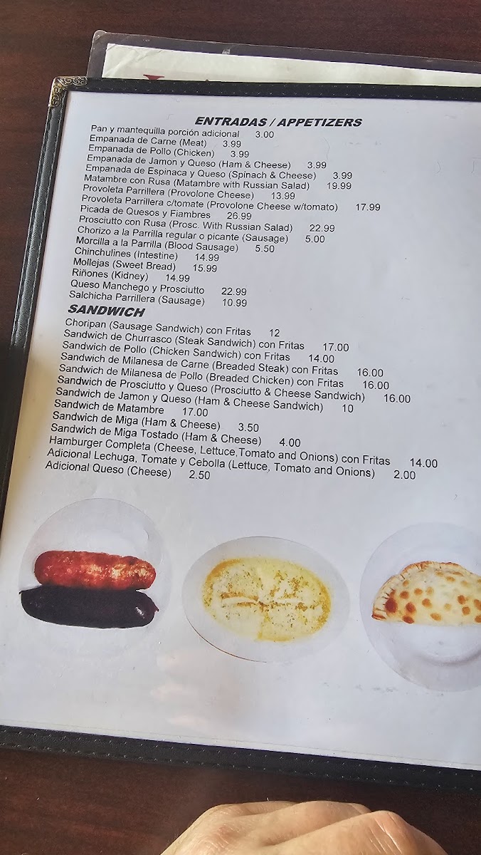 Argentine steak, choice of temperature. Two sides from a variety including white rice, mixed or Russian salad, black beans, fried plantains, baked potato, assorted fries, mashed potatoes, grilled tomato, or mixed vegetables.